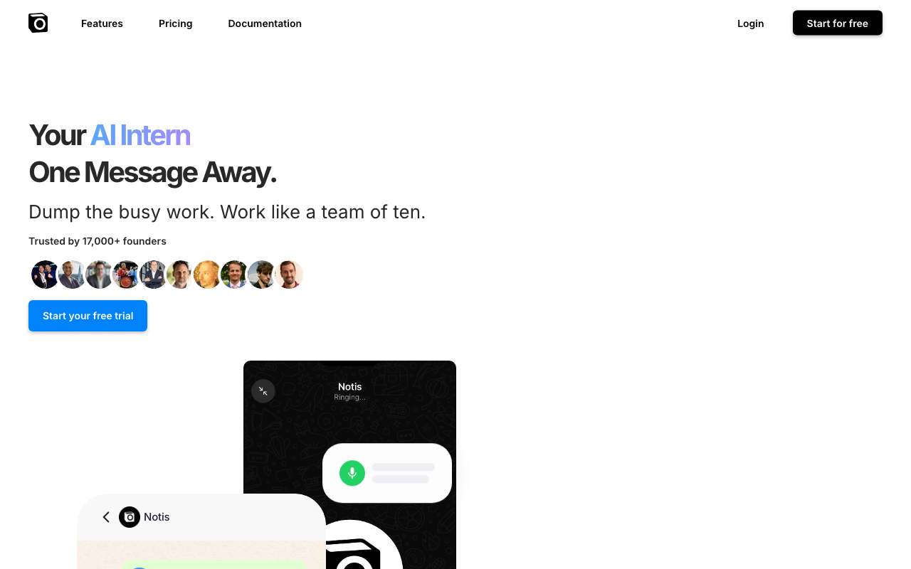 Notis es una inteligente agente de IA que se integra en tus aplicaciones de mensajería para tomar notas, gestionar tareas y resumir reuniones, todo sincronizado con Notion.