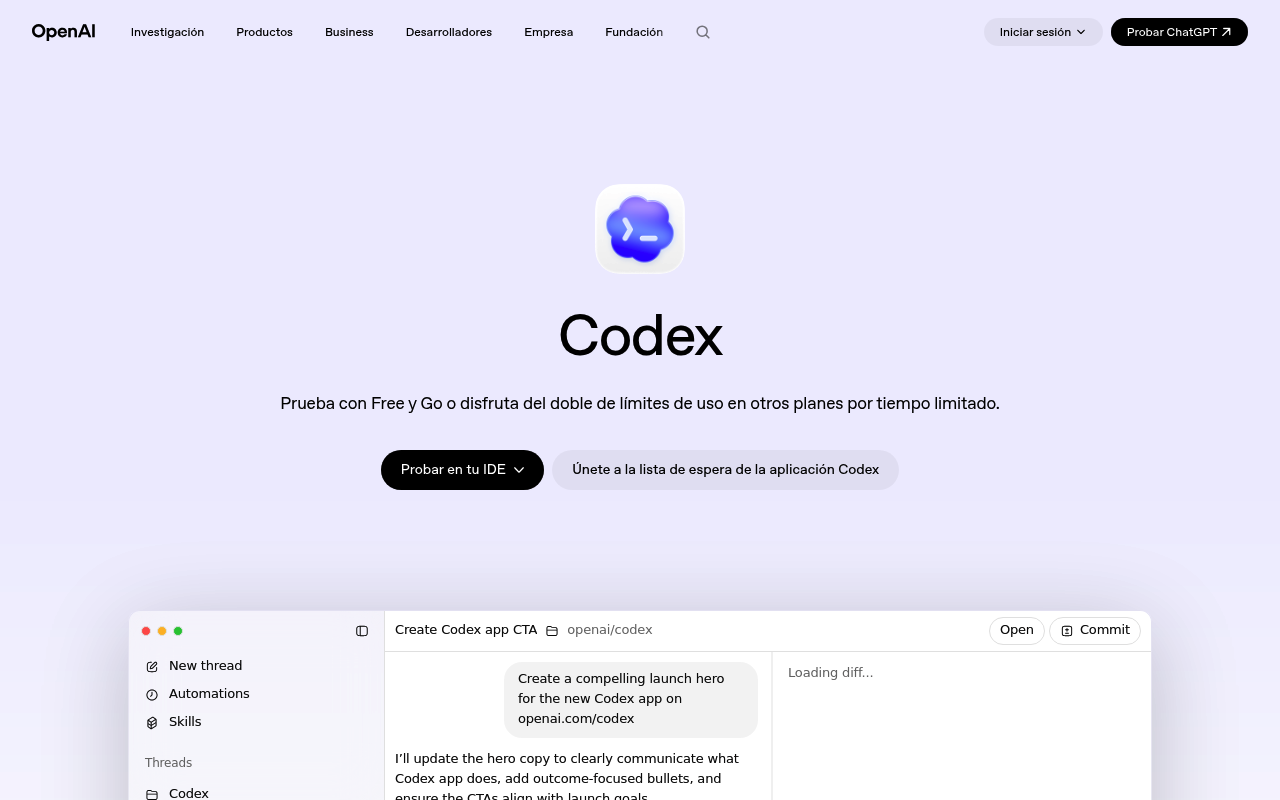OpenAI Codex es un agente de inteligencia artificial basado en la nube, desarrollado por OpenAI, que se integra en las suscripciones de ChatGPT y API para facilitar la generación, edición, depuración y revisión de código. Utiliza modelos avanzados como GPT-5, codex-mini-latest y gpt-5-mini, ofreciendo soluciones innovadoras para desarrolladores.