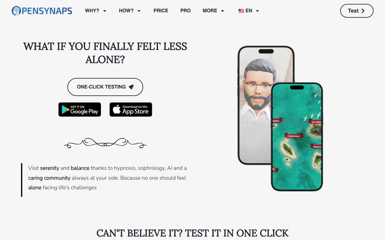 Plataforma de bienestar emocional con sesiones guiadas de hipnosis, sophrología, meditación y apoyo IA para personas que buscan aliviar estrés, ansiedad o soledad.