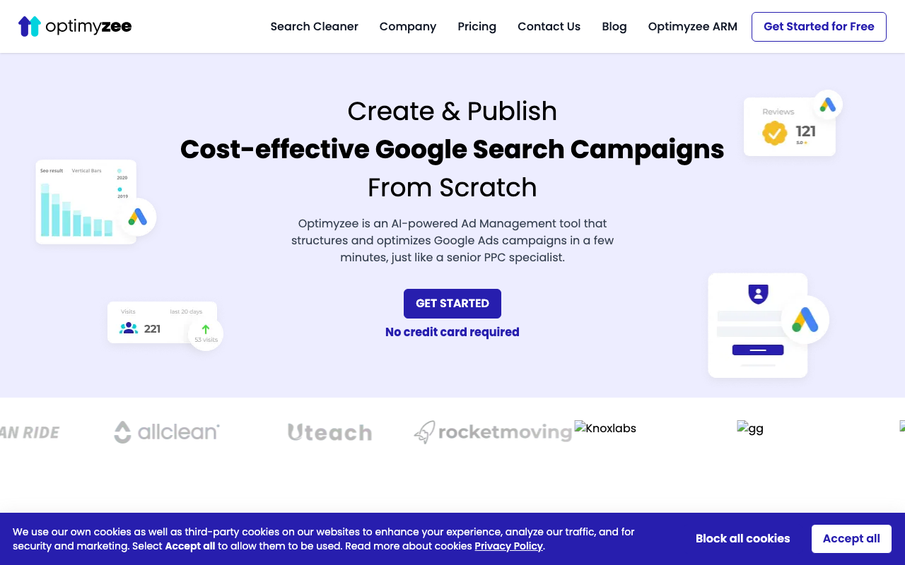 Optimyzee es una plataforma de IA enfocada en la gestión y optimización de campañas de Google Ads. Su propuesta es ayudar a crear, estructurar y mejorar anuncios de búsqueda con recomendaciones basadas en datos, automatización y flujos pensados para ahorrar trabajo manual.