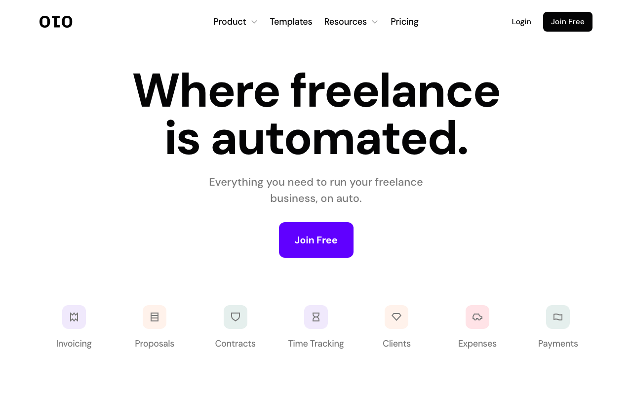 oto es una plataforma financiera pensada para freelancers que necesitan ordenar su negocio sin perder tiempo en tareas administrativas. Reúne en un solo lugar la creación de propuestas, facturas, contratos online, seguimiento de horas, gastos y gestión de clientes.