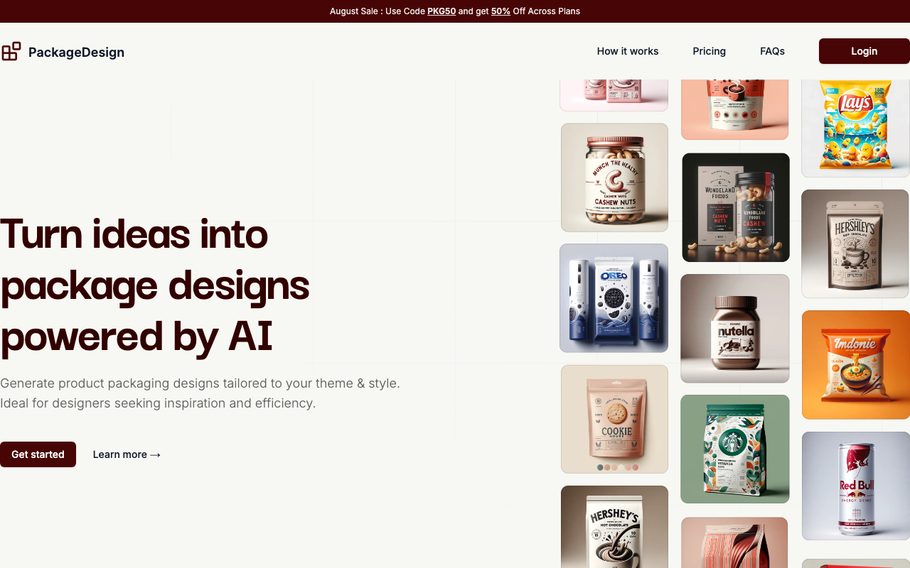 PackageDesign es una herramienta de IA enfocada en crear propuestas visuales de packaging a partir de los datos del producto, el estilo de marca y el tema elegido. Su objetivo es acelerar la etapa creativa y ayudar a convertir ideas sueltas en diseños de empaque más aterrizados.