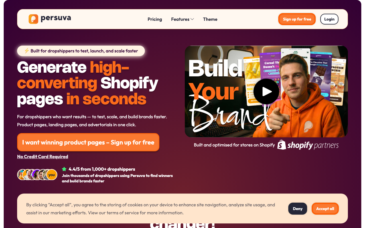 Persuva es una plataforma de IA enfocada en e-commerce y dropshipping que ayuda a crear piezas de venta con mayor rapidez: páginas de producto, landing pages, advertorials y copys para anuncios. Su propuesta gira en torno a la conversión, no solo a la generación de texto.