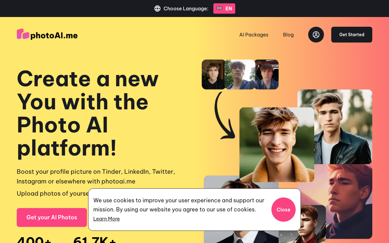 PhotoAI permite crear nuevas imágenes tuyas con inteligencia artificial a partir de fotos que subes. La plataforma entrena un modelo con tus selfies y luego genera retratos con distintos estilos, fondos y usos, normalmente en menos de 24 horas.
