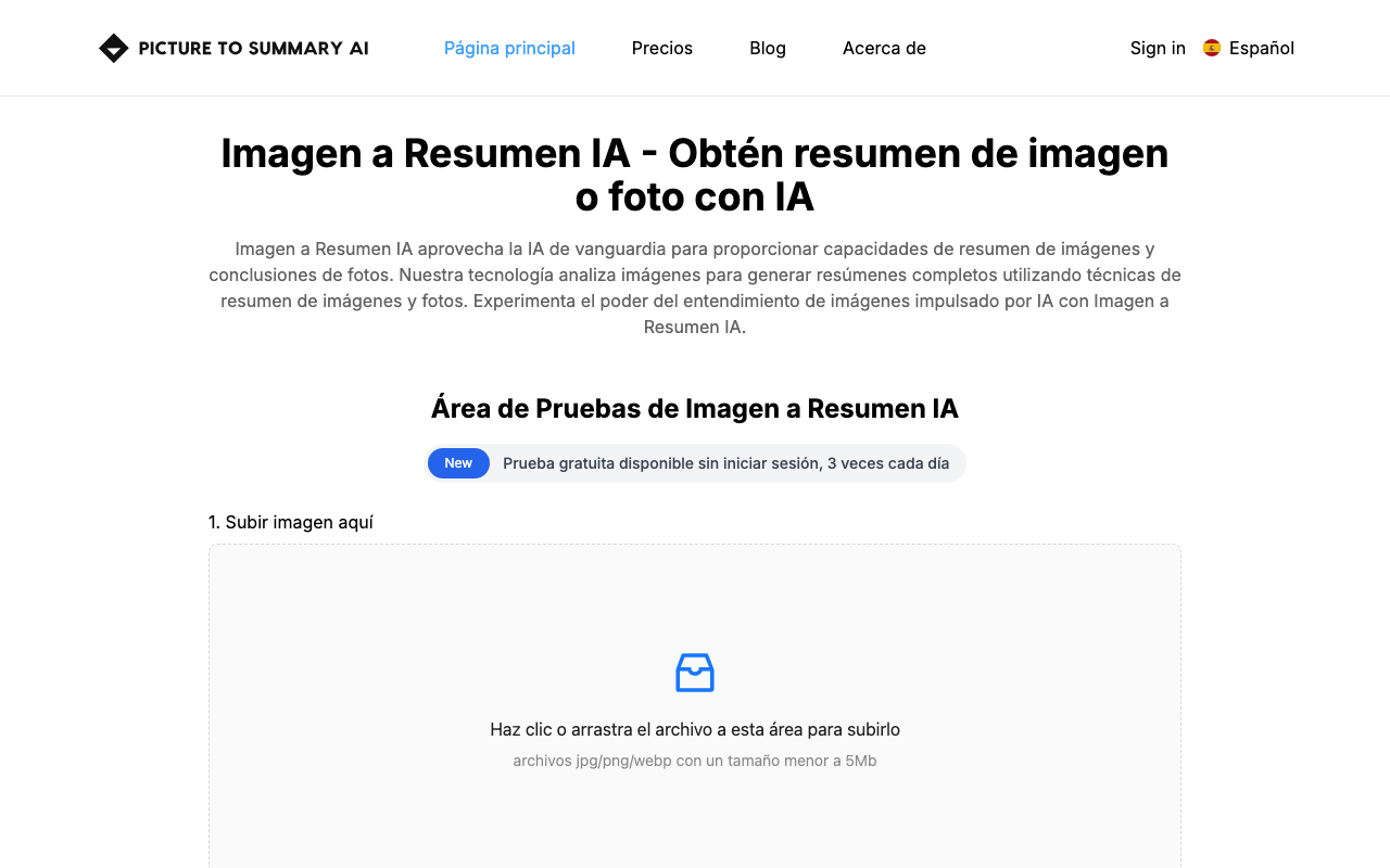 Picture To Summary AI analiza imágenes y genera resúmenes detallados utilizando una tecnología de IA avanzada.