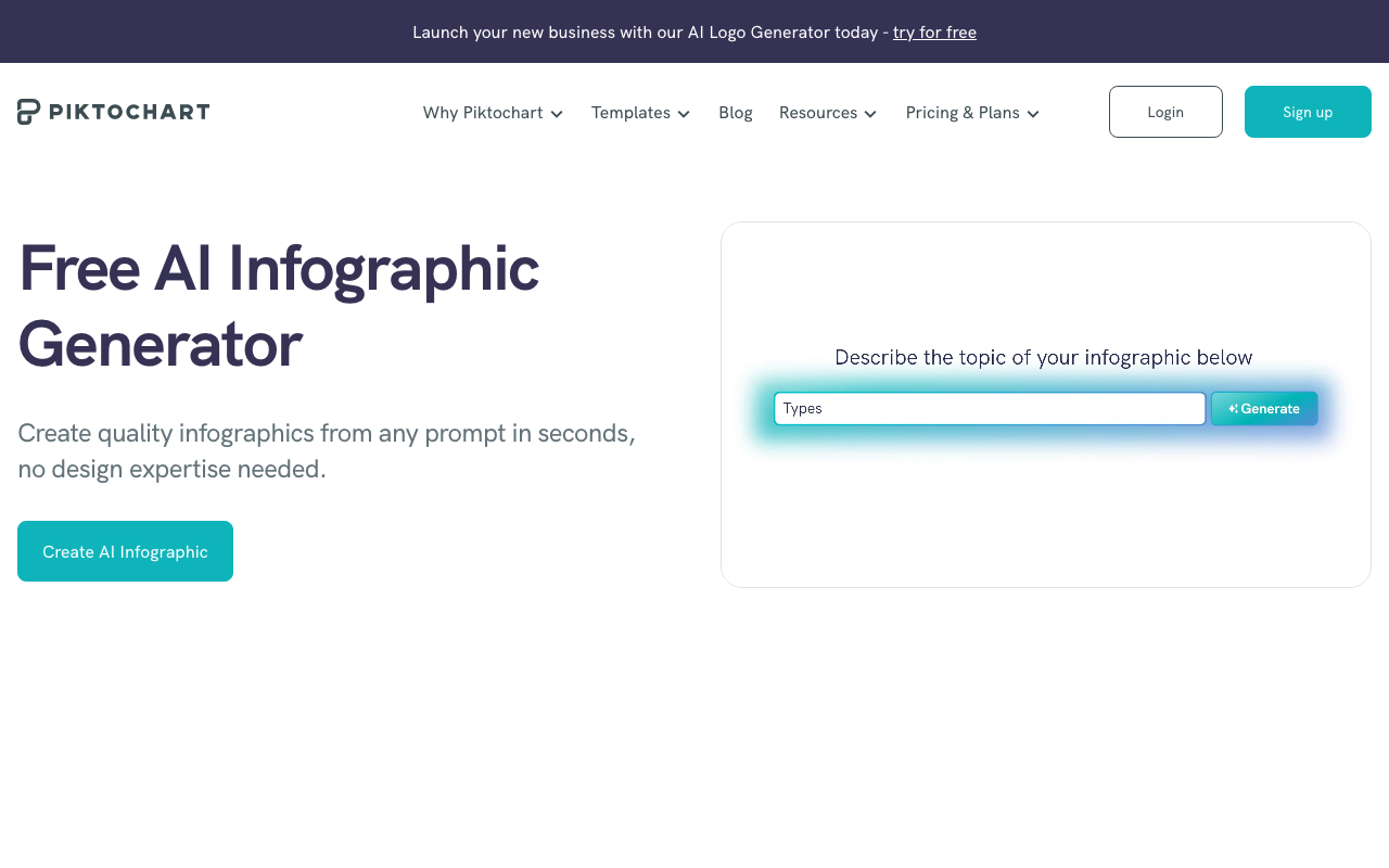 Piktochart AI es una herramienta gratuita que permite crear infografías personalizadas en segundos, con capacidades avanzadas de IA.