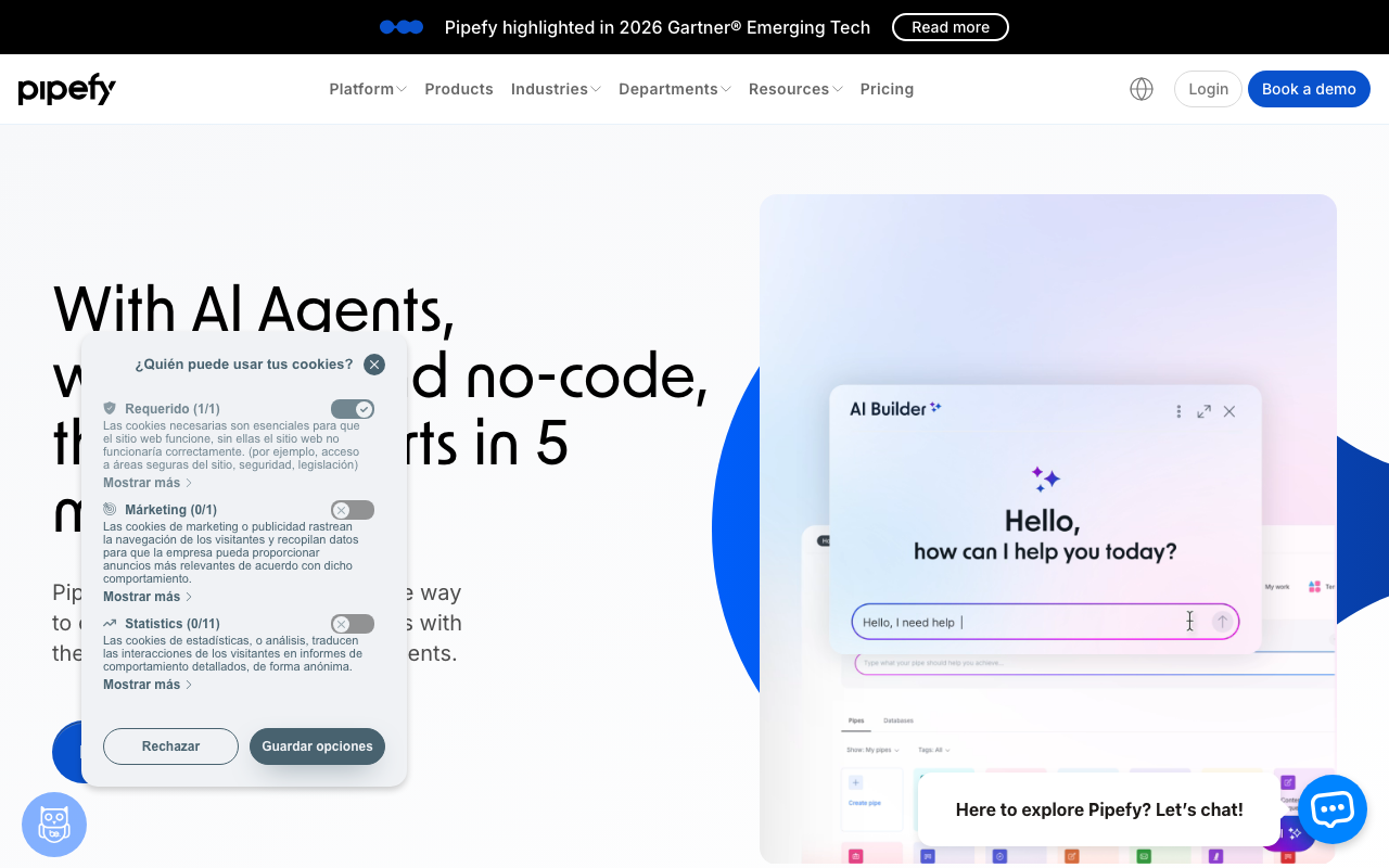 Pipefy es una herramienta de automatización de procesos de negocio que permite a los usuarios gestionar y automatizar flujos de trabajo sin necesidad de habilidades de programación. Está diseñada para optimizar operaciones en diferentes equipos, como Recursos Humanos, Compras, Atención al Cliente, entre otros.