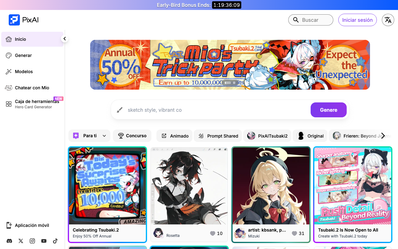 PixAI es una herramienta generativa de IA que se especializa en crear arte de anime de alta calidad. Ofrece una variedad de herramientas de IA y plantillas para la generación de personajes anime, permitiendo a los usuarios explorar y personalizar sus propias creaciones de anime directamente desde el navegador.