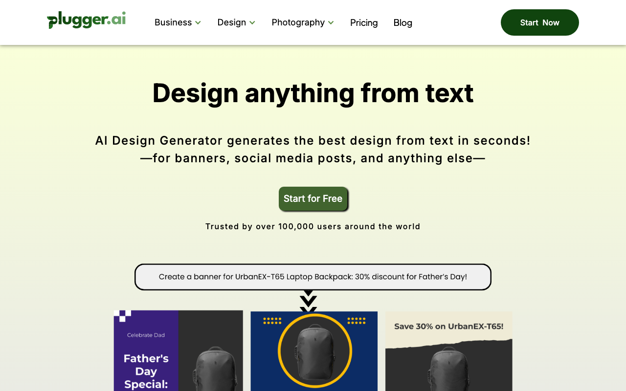 Plugger es un generador de diseño con IA pensado para crear piezas visuales a partir de texto en pocos segundos. Su enfoque está en simplificar tareas de diseño para marketing, contenido y branding, con resultados listos para usar en distintos formatos.