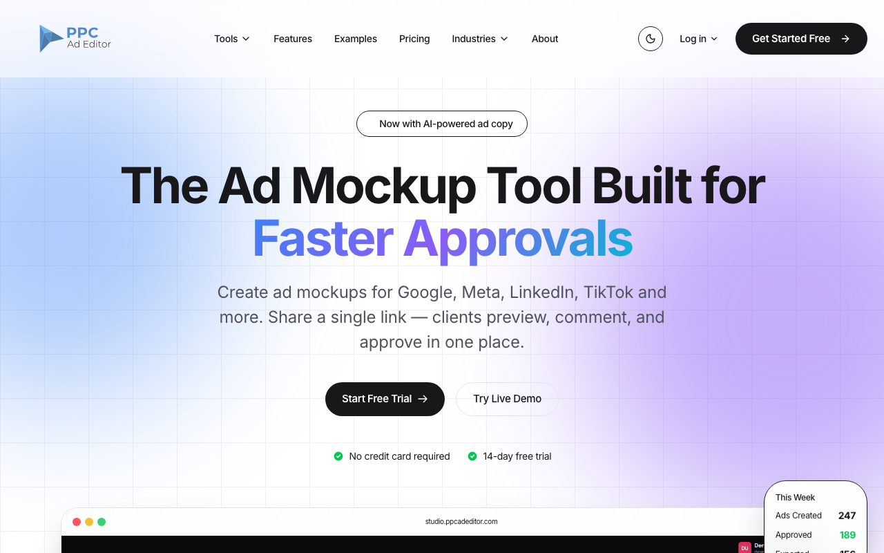 PPC Ad Editor es una plataforma con IA pensada para simplificar el flujo de trabajo publicitario: crear borradores de anuncios, revisarlos en equipo y acelerar la aprobación antes del lanzamiento. Está orientada a equipos que manejan múltiples campañas y canales, y que necesitan ordenar el proceso editorial sin perder velocidad.