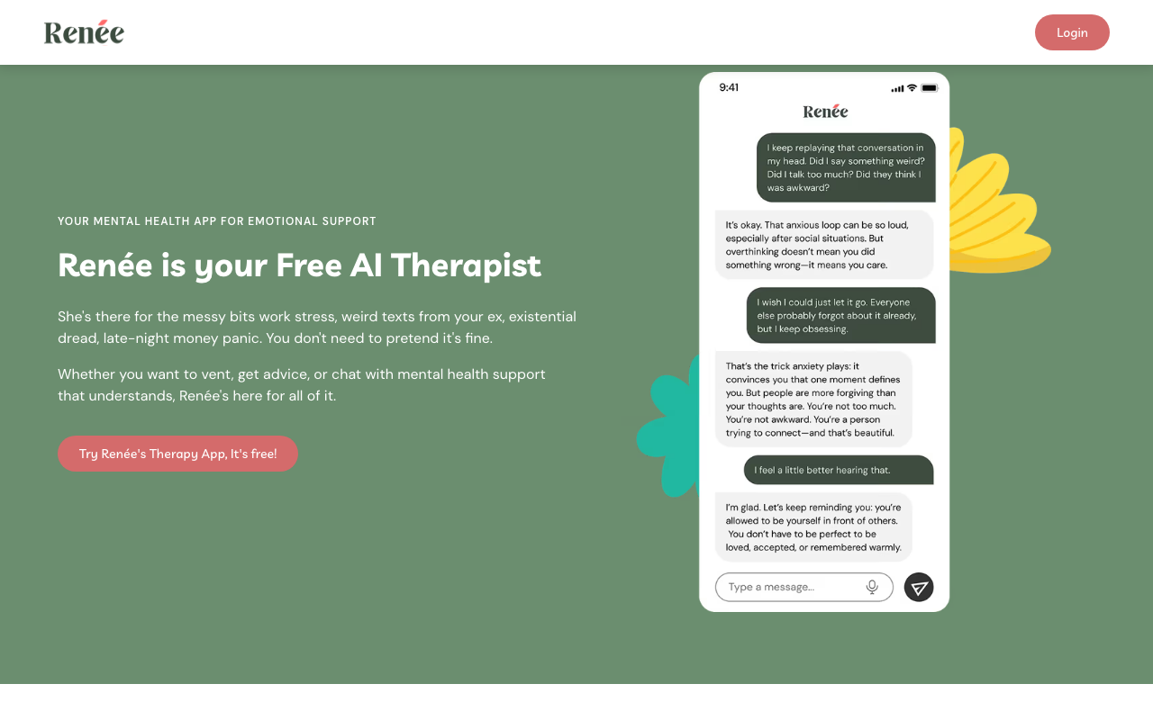 Renée Space es una app de apoyo emocional con IA pensada para conversar en cualquier momento sobre lo que te preocupa. Funciona como una compañera digital que escucha sin juzgar, recuerda tu historia y ayuda a ordenar ideas cuando te sientes abrumado.