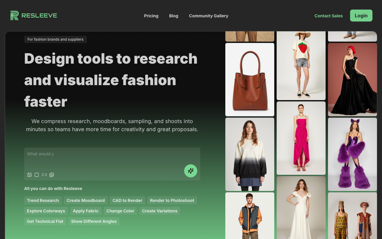 Resleeve encaja especialmente en moda, desde diseñadores independientes hasta equipos pequeños que trabajan con procesos creativos y necesitan velocidad de iteración.