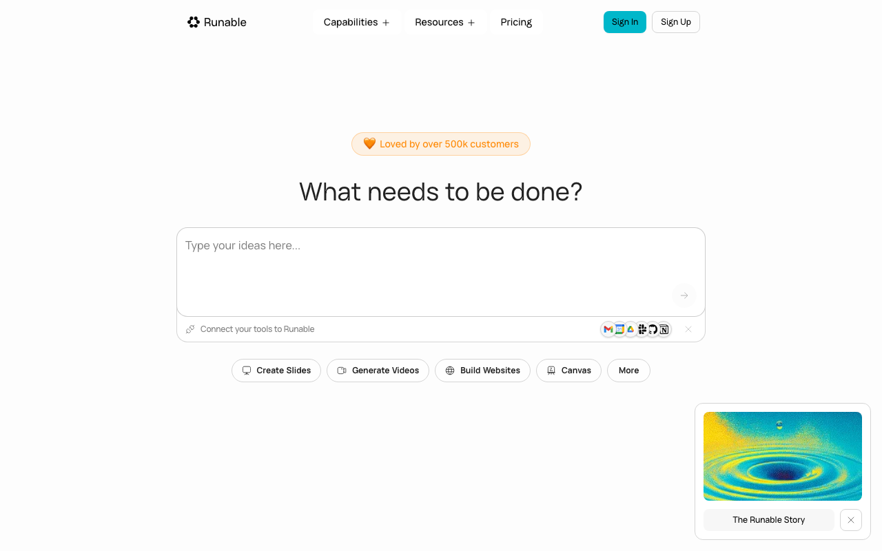 Runable es una herramienta de IA que automatiza tareas digitales, desde crear presentaciones hasta generar videos y podcasts.