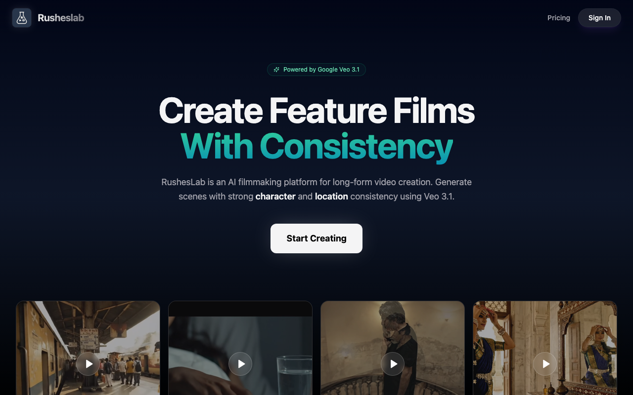 Rusheslab es un estudio de previsualización para cineastas que ayuda a transformar conceptos en escenas listas para planificar. Su enfoque está en mantener consistencia visual, especialmente en personajes y locaciones, para que el equipo pueda decidir con más claridad antes de pasar a producción.