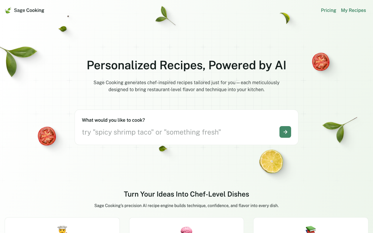 Sage Cooking es un gestor de recetas con IA pensado para simplificar la cocina diaria. A partir de tus gustos, preferencias y los ingredientes disponibles, propone platos adaptados a lo que realmente puedes preparar en ese momento.