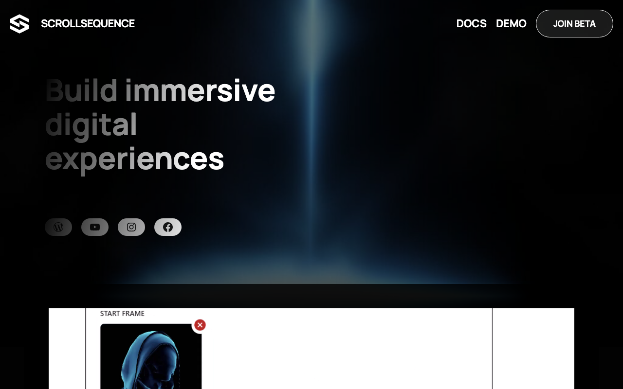 Scrollsequence permite construir experiencias web interactivas donde la animación avanza al ritmo del scroll del usuario. Su enfoque combina video, motion graphics y contenido HTML para crear narrativas inmersivas sin depender de flujos complejos de edición.