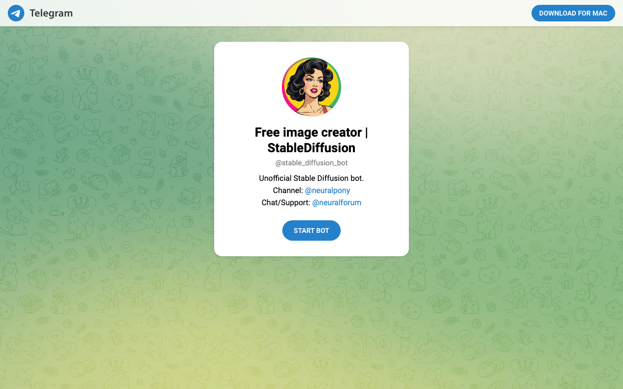 Genera imágenes con Stable Diffusion desde Telegram, ideal para crear arte rápido con prompts y recibir resultados en el chat.