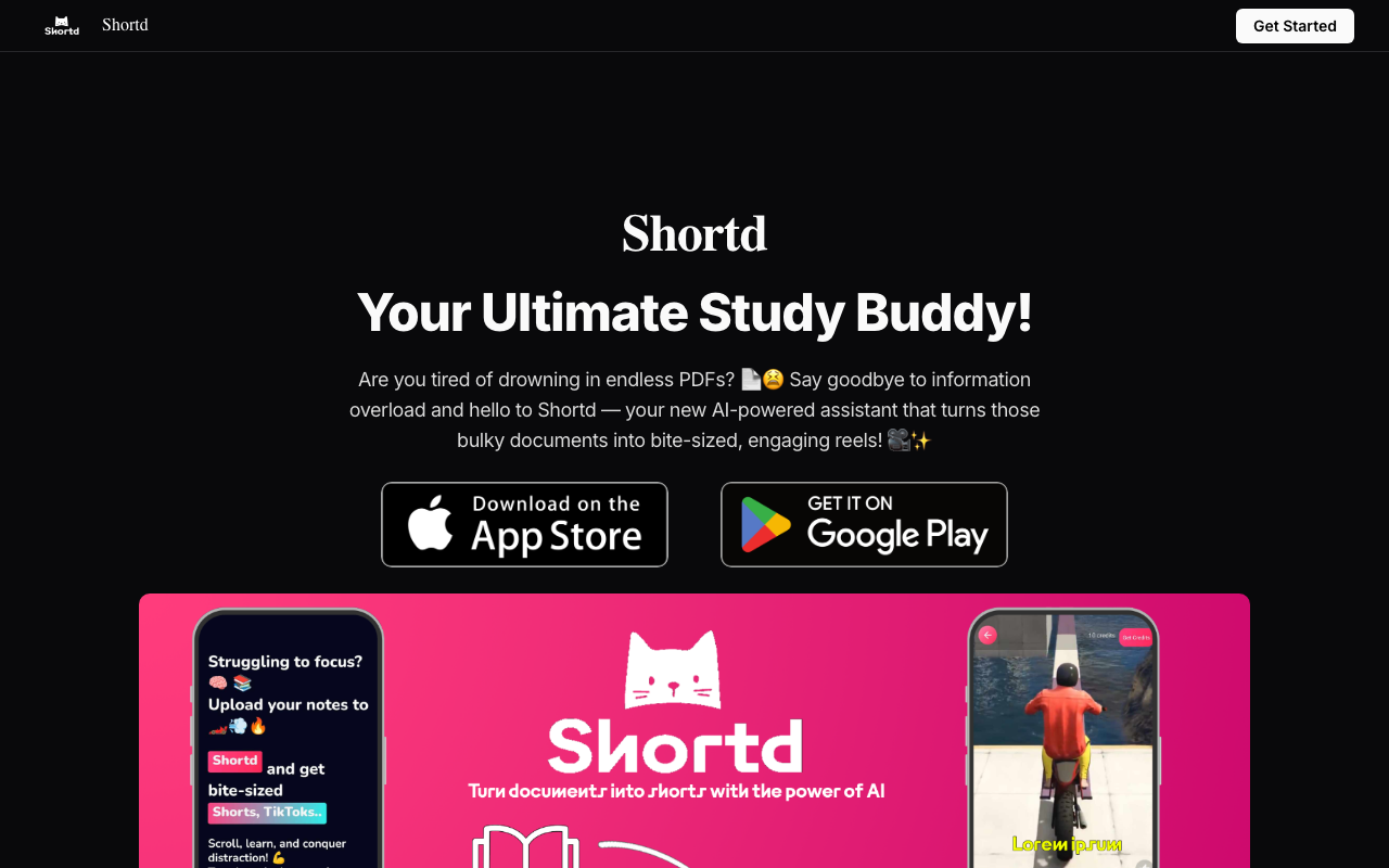 Shortd.io es una app enfocada en el estudio y la productividad: toma PDFs extensos y también imágenes, y los transforma en piezas más digeribles para que repases con menos fricción. El objetivo es claro: pasar de “material pesado” a “contenido listo para revisar”, idealmente en formato de snippets y reels de repaso.