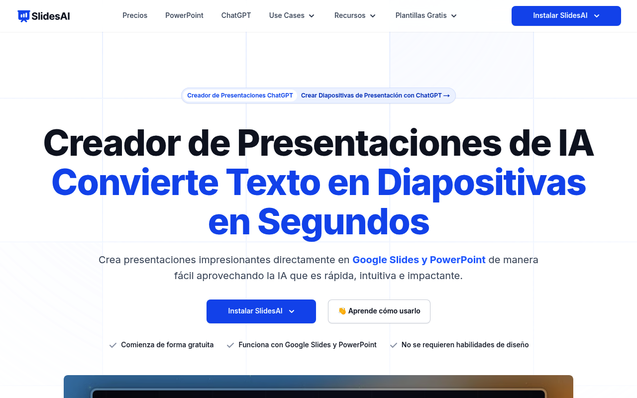 Generador de presentaciones de Google Slides a partir de texto con IA, ideal para ahorrar tiempo y esfuerzo en su creación.