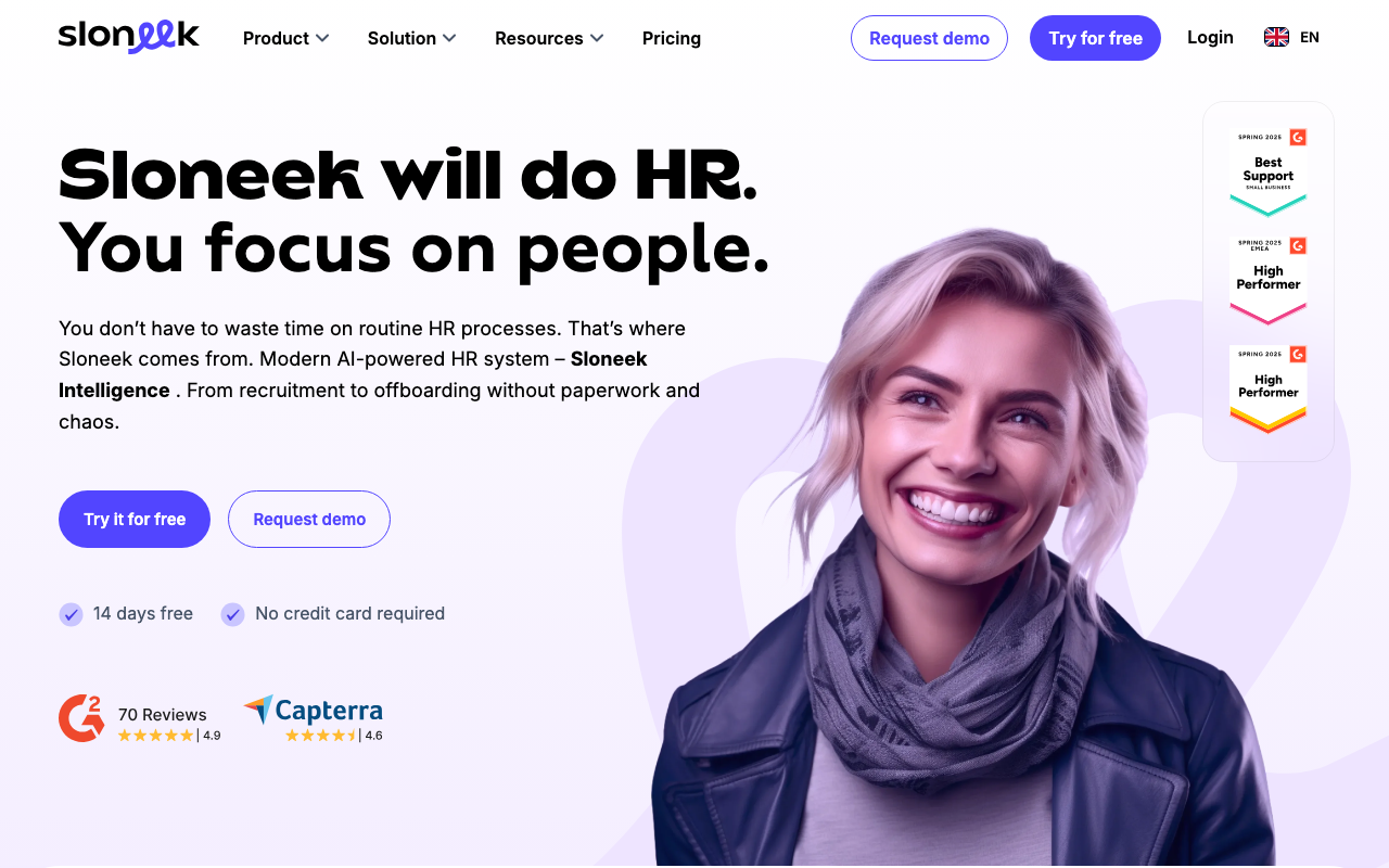 Sloneek está diseñado para pequeñas y medianas empresas (Pymes) y startups que buscan una solución integral de gestión de RRHH. La plataforma es ideal para administrar todo el ciclo de vida del empleado, desde el reclutamiento hasta la salida, y facilita la automatización de procesos administrativos.