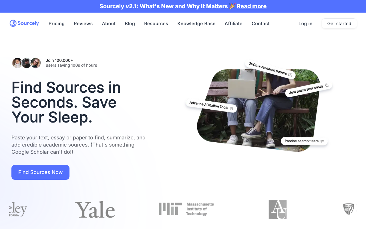 Sourcely es un asistente de búsqueda académica con IA que ayuda a encontrar papers, artículos y fuentes pertinentes a partir de un párrafo, ensayo o tema de investigación. Su enfoque está pensado para acelerar la fase más tediosa del trabajo académico: localizar evidencia útil y convertirla en citas aprovechables.