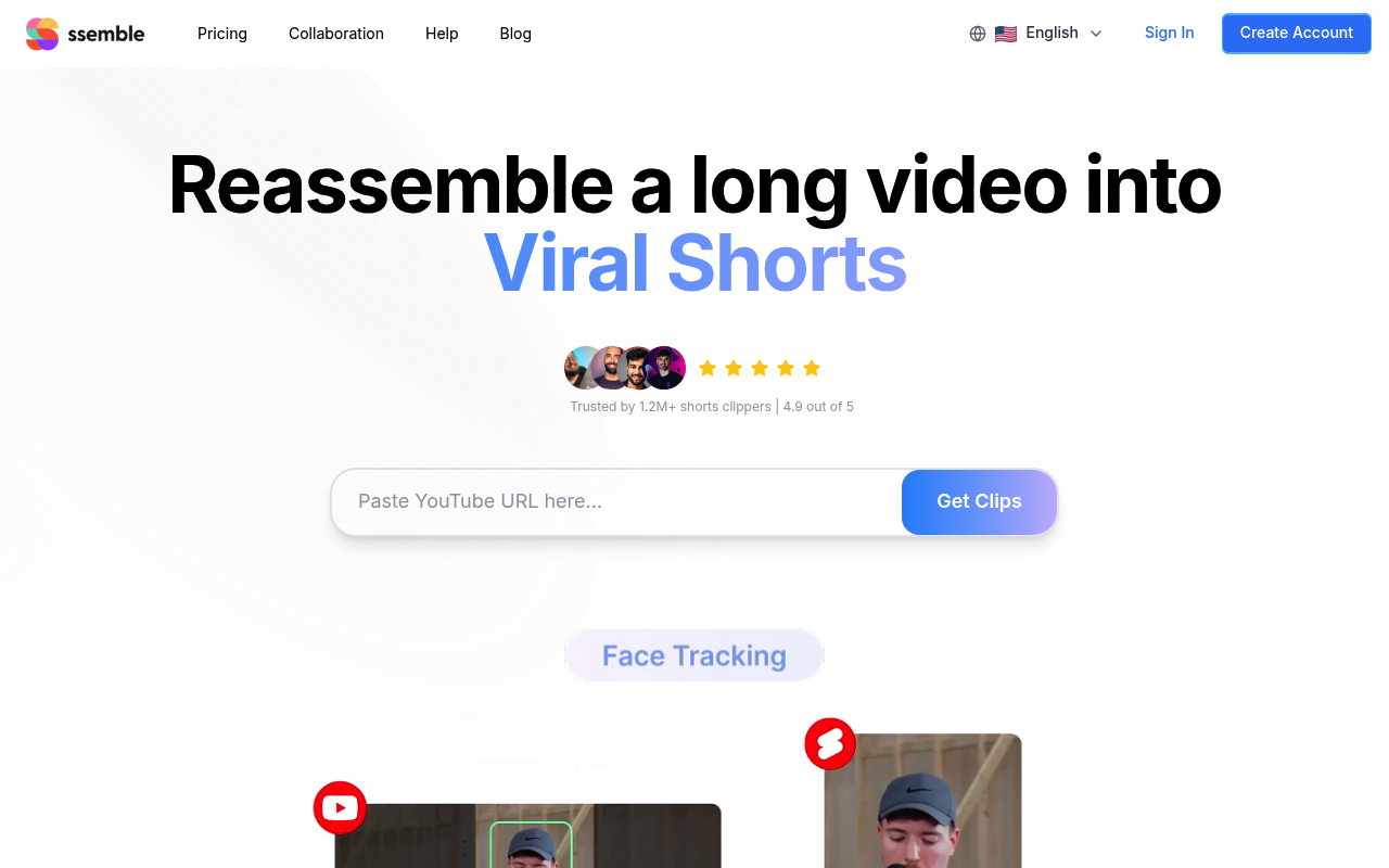 Ssemble es una plataforma de edición de video basada en la web que utiliza inteligencia artificial para transformar videos largos en clips cortos y virales, optimizados para redes sociales como TikTok, YouTube Shorts e Instagram Reels.