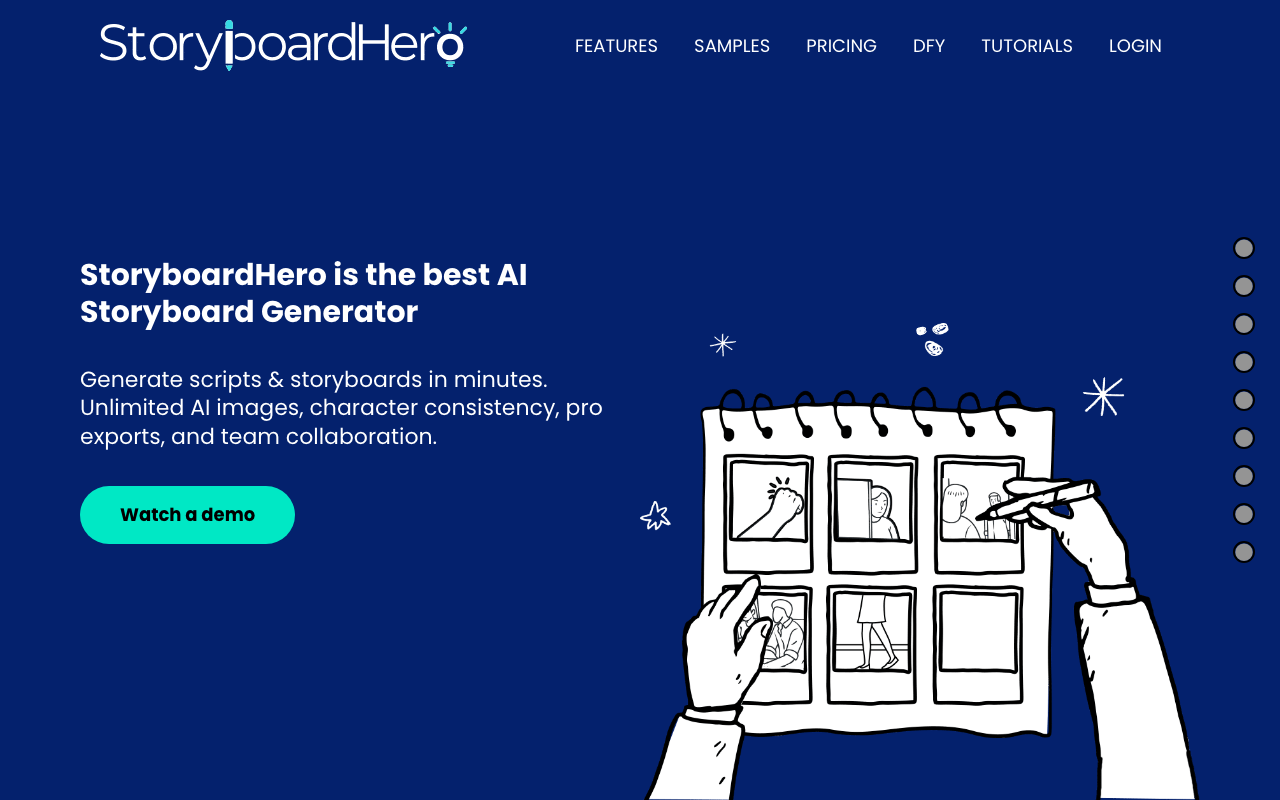 StoryboardHero es una plataforma de IA pensada para convertir briefs, ideas o guiones en conceptos visuales, scripts y storyboards listos para presentar. Está enfocada en agilizar la preproducción de video sin depender de procesos manuales largos.