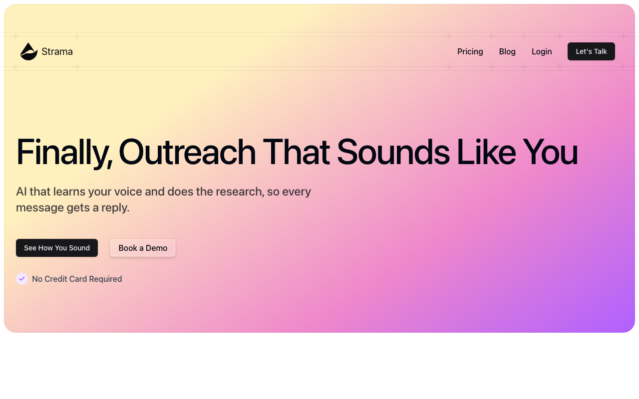 Strama es una plataforma de prospección outbound impulsada por inteligencia artificial que investiga a los prospectos en profundidad y crea mensajes personalizados que realmente resuenan, desde correos electrónicos hasta LinkedIn.