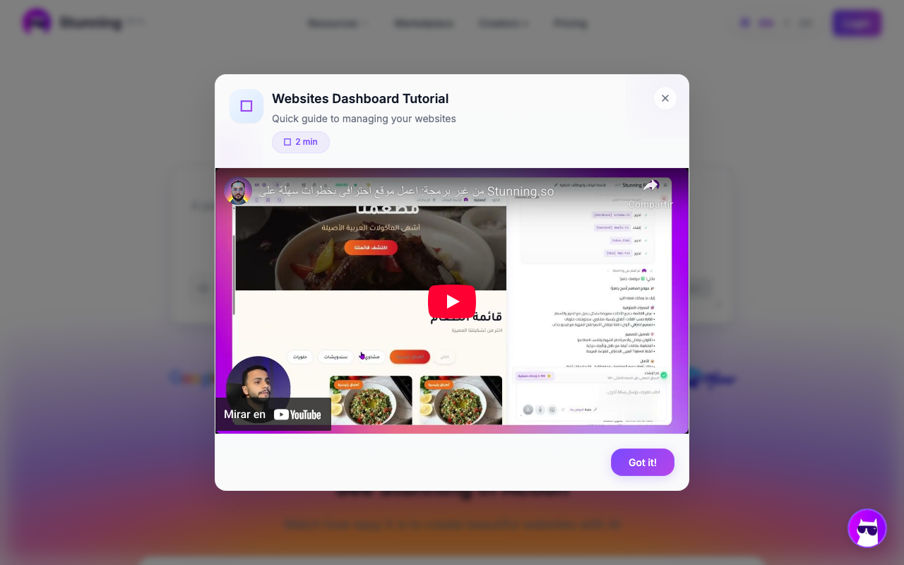 Stunning resuelve el problema de la creación de sitios web complicada y costosa. Con su ayuda, los usuarios pueden generar sitios web completos en menos de 30 segundos, incluyendo texto y imágenes, sin necesidad de escribir una sola línea de código.