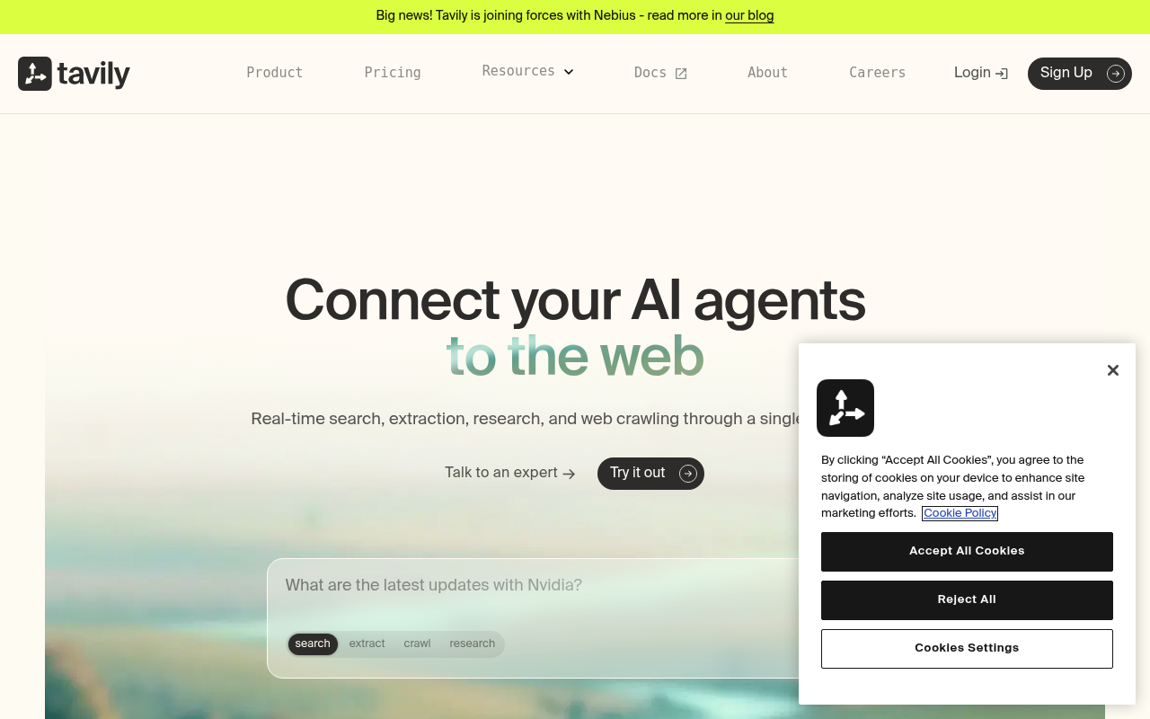 Tavily aborda el problema de obtener resultados de búsqueda estructurados y optimizados para LLMs, eliminando la necesidad de un procesamiento posterior extenso. Ofrece resultados en formato JSON que incluyen resúmenes, citas de fuentes, destacados de contenido y fragmentos pre-trimados para ventanas de contexto de IA.