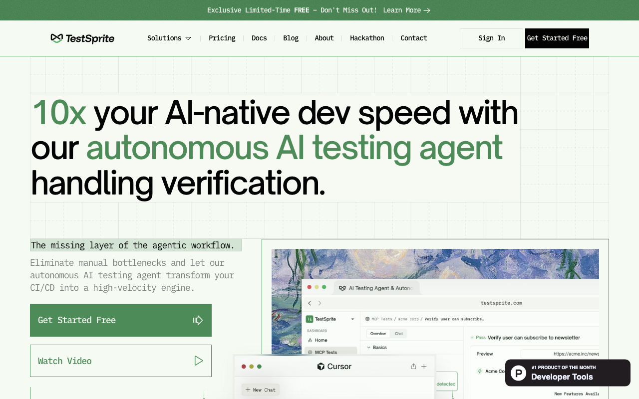 TestSprite es una plataforma de testing impulsada por IA pensada para equipos que construyen software, especialmente productos con componentes de inteligencia artificial. Su propuesta gira en torno a automatizar gran parte del ciclo de verificación: interpreta requisitos, arma planes de prueba, ejecuta flujos, detecta errores y genera reportes útiles para el equipo.