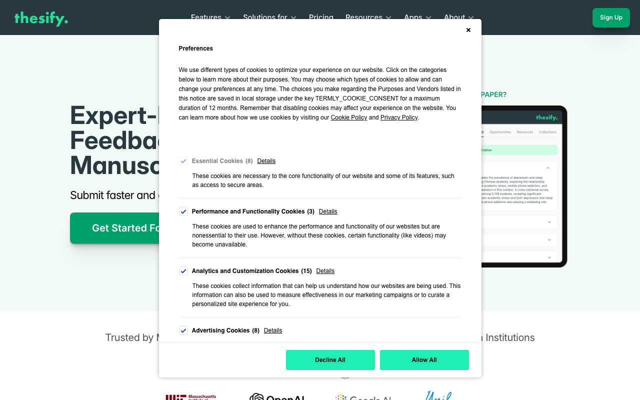 Thesify es un asistente de escritura académica con IA pensado para revisar manuscritos antes de enviarlos. En lugar de redactar por ti, analiza el documento y entrega feedback estructurado, claro y accionable para fortalecer argumentos, detectar debilidades y mejorar la calidad del texto sin romper las reglas de integridad académica.