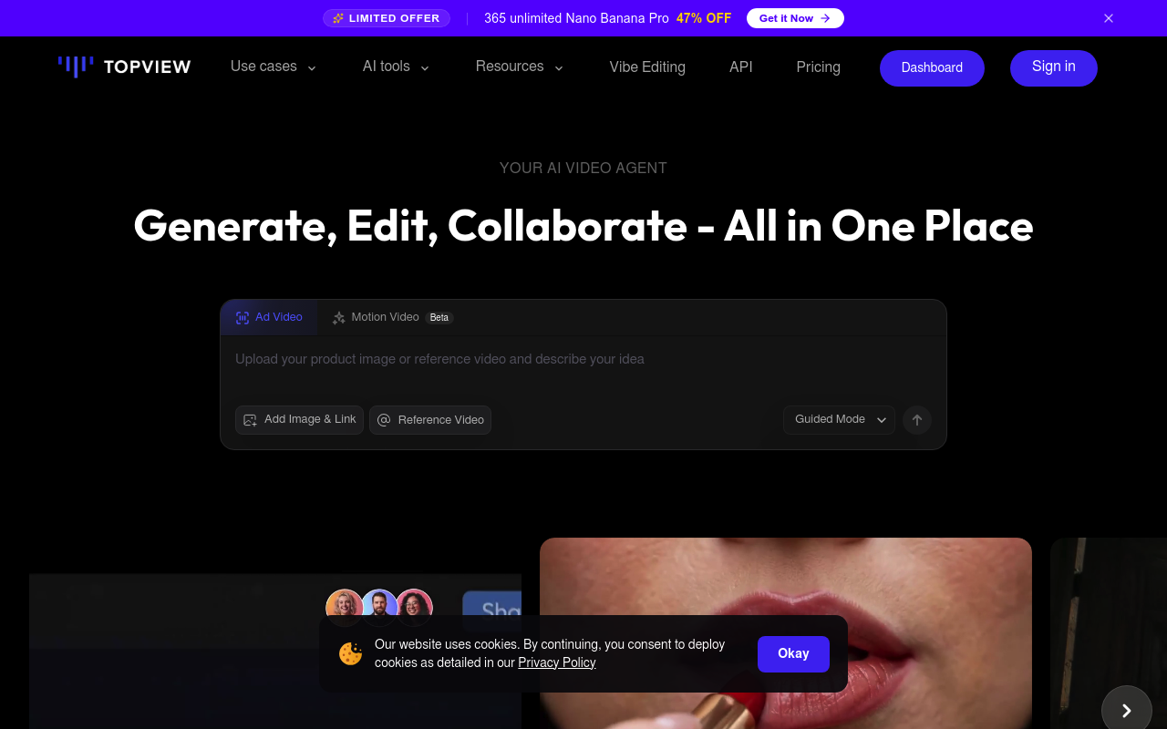 TopView.ai es una plataforma impulsada por inteligencia artificial que automatiza la creación de videos, ideal para marketing, comercio electrónico y redes sociales. La herramienta permite generar guiones, avatares, locuciones y ediciones a partir de texto, imágenes o URLs, resolviendo el problema de la producción de video tradicional, que suele ser costosa y llevar mucho tiempo.