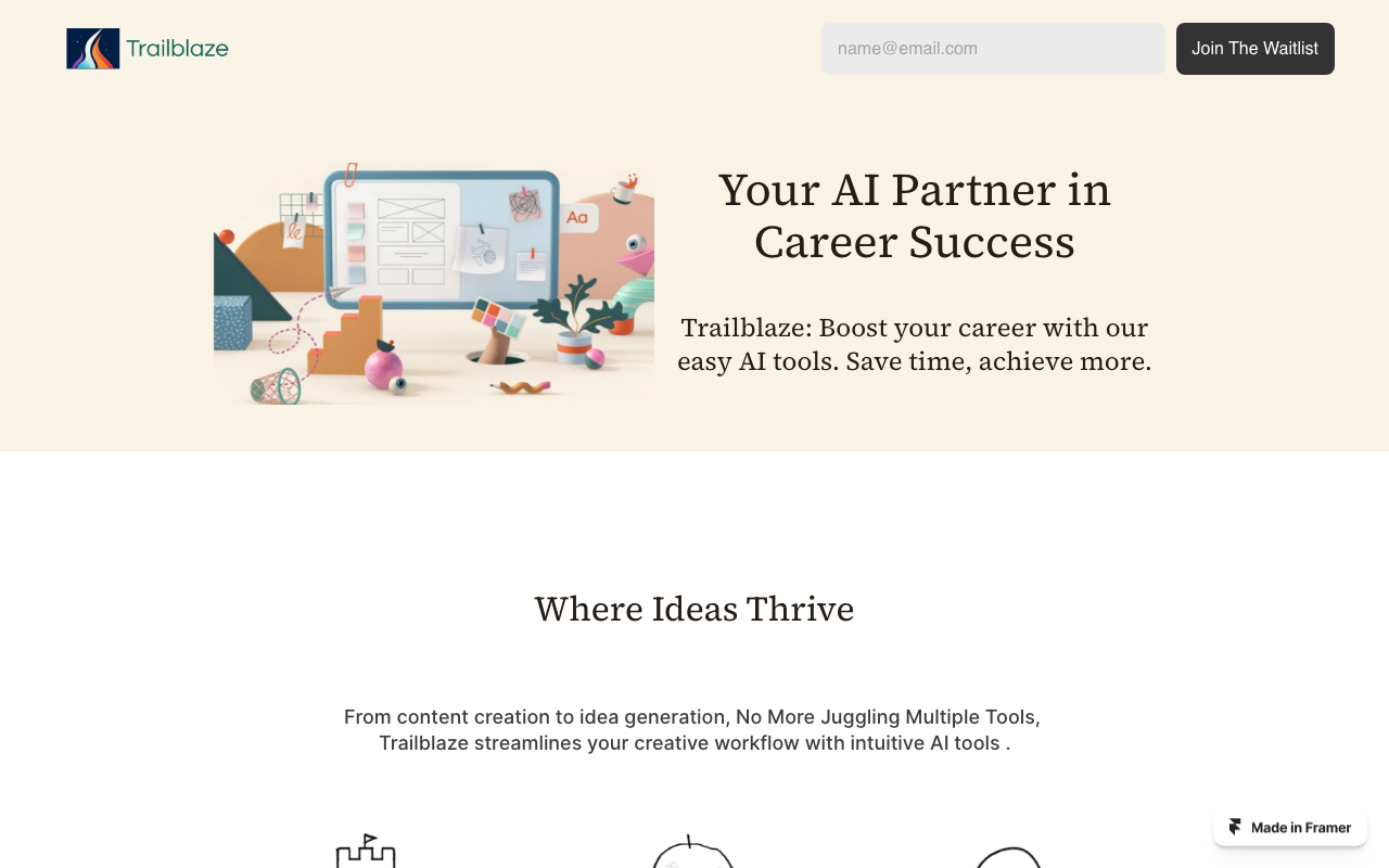 Trailblaze es una plataforma de IA enfocada en productividad profesional, trabajo y desarrollo de carrera. Su propuesta gira en torno a centralizar herramientas útiles para simplificar tareas cotidianas, ahorrar tiempo y mantener el foco en lo importante.