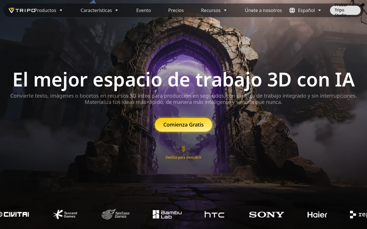 Tripo3D.ai es una herramienta basada en la web que utiliza inteligencia artificial para generar modelos 3D de alta calidad a partir de descripciones de texto, imágenes, bocetos o entradas de múltiples vistas. Esta herramienta está diseñada para automatizar el proceso de modelado 3D, que tradicionalmente es laborioso y consume mucho tiempo, especialmente en aplicaciones como videojuegos, impresión 3D, animación, realidad aumentada/virtual y diseño de productos.