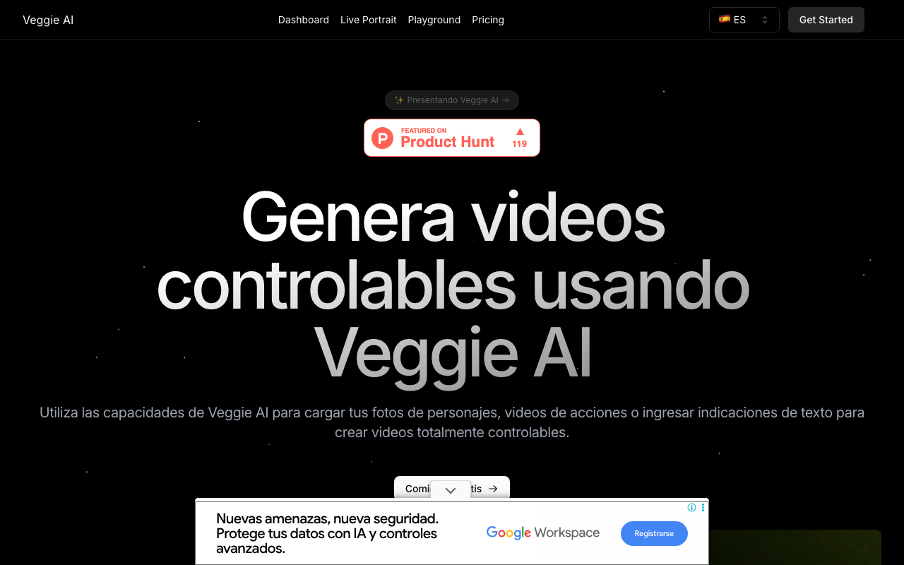 Veggie AI es una plataforma web de generación de video con IA enfocada en crear videos controlables a partir de imágenes, videos de referencia o prompts de texto. Su propuesta apunta a simplificar un proceso que normalmente requiere edición avanzada, animación o conocimientos técnicos.
