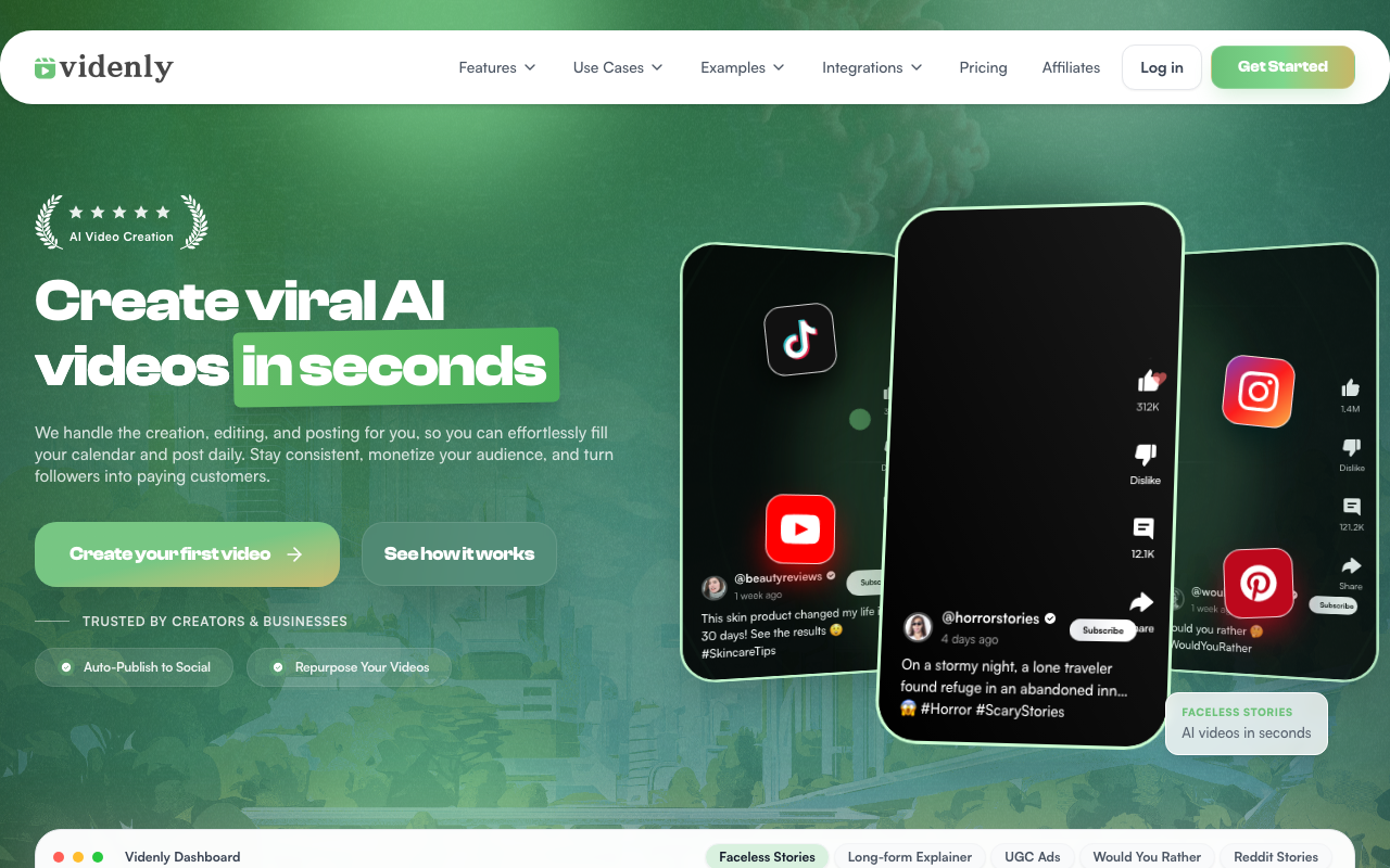 Si manejas un canal de YouTube y TikTok, trabajas en marketing de contenidos, o necesitas producir piezas frecuentes para campañas, Videnly encaja especialmente bien. También es útil para creadores que quieren escalar sin contratar un equipo de edición.