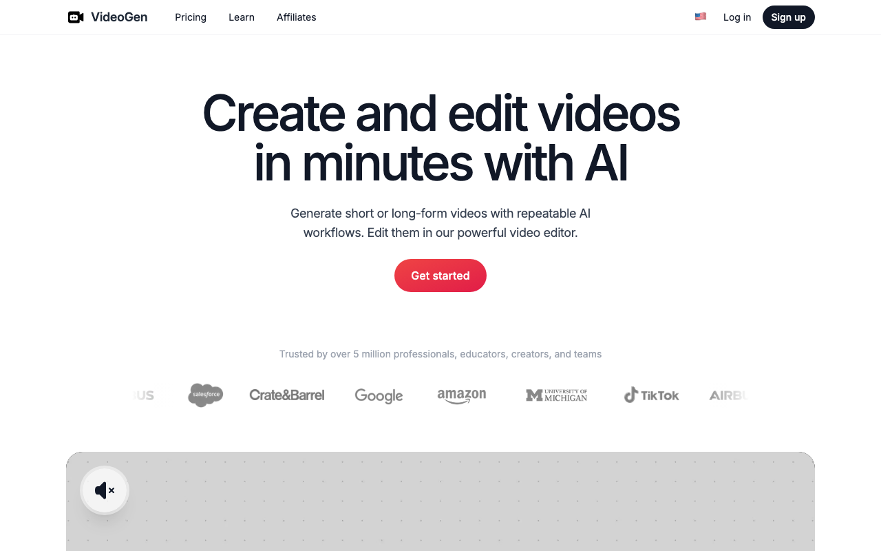 VideoGen es un generador de video con IA pensado para acelerar todo el flujo de producción: desde la idea y el guion hasta la creación del video final. Su propuesta central es clara: crear y editar en minutos, con procesos automatizados y flujos repetibles.