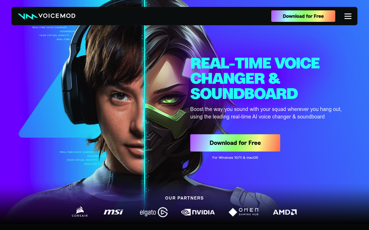 Herramienta de IA para cambiar la voz en tiempo real con más de 200 filtros y efectos personalizados para juegos y streaming.