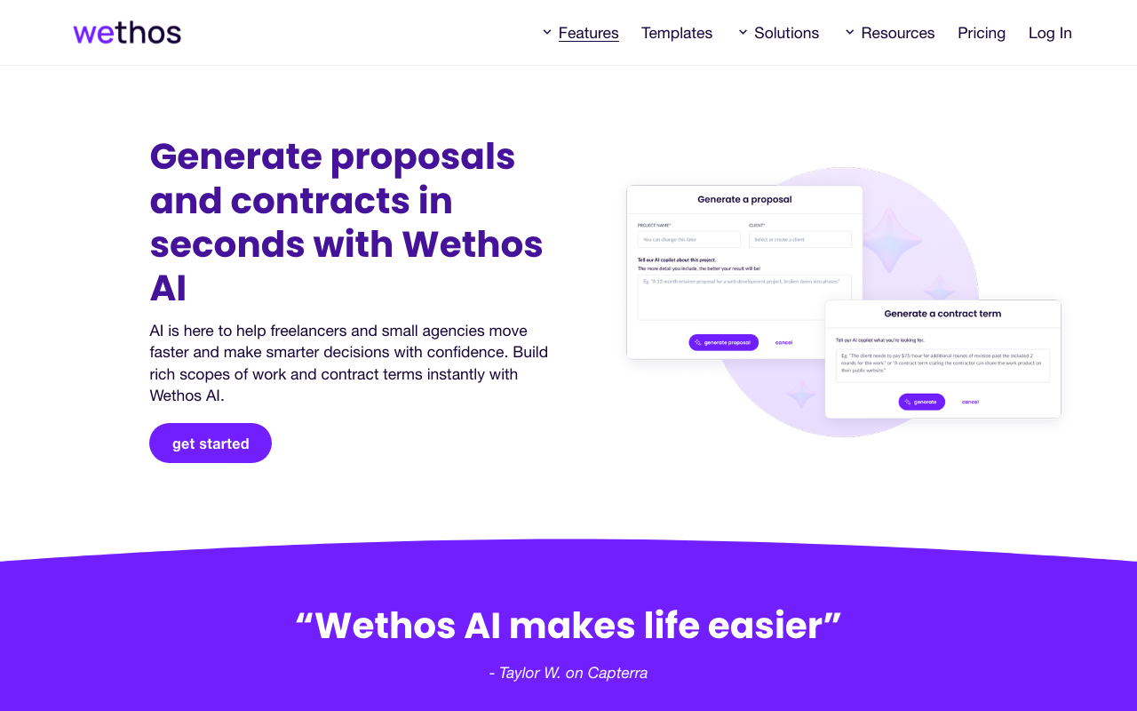Wethos Proposals forma parte de la plataforma Wethos y usa IA para generar propuestas, contratos y scopes of work en segundos. Está pensada para que freelancers, estudios creativos y agencias dejen de armar documentos desde cero y puedan enfocarse en vender y entregar mejor.