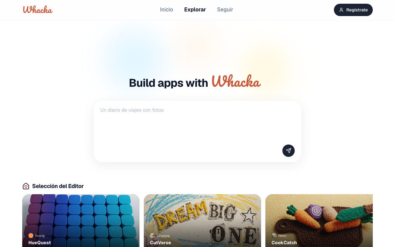 Whacka permite transformar una idea en una aplicación usable directamente desde el teléfono. Su propuesta apunta a simplificar al máximo el paso de concepto a producto, sin exigir conocimientos de código ni hardware especial.