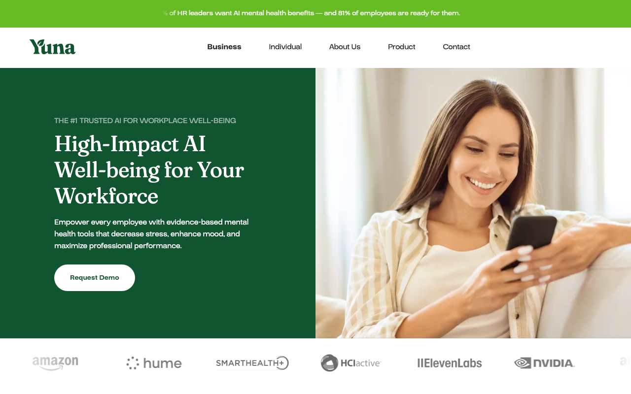 A diferencia de un chatbot genérico, Yuna AI está orientada específicamente a salud mental y apoyo emocional. Destaca por sus conversaciones confidenciales, técnicas calmantes en tiempo real, tracking de bienestar, monitoreo de seguridad y un enfoque respaldado por especialistas en psicología clínica. También ofrece una propuesta de valor interesante para empresas que necesitan insights de bienestar sin depender solo de encuestas tradicionales.